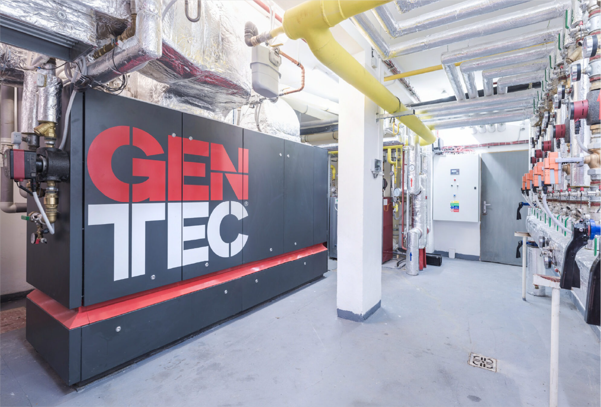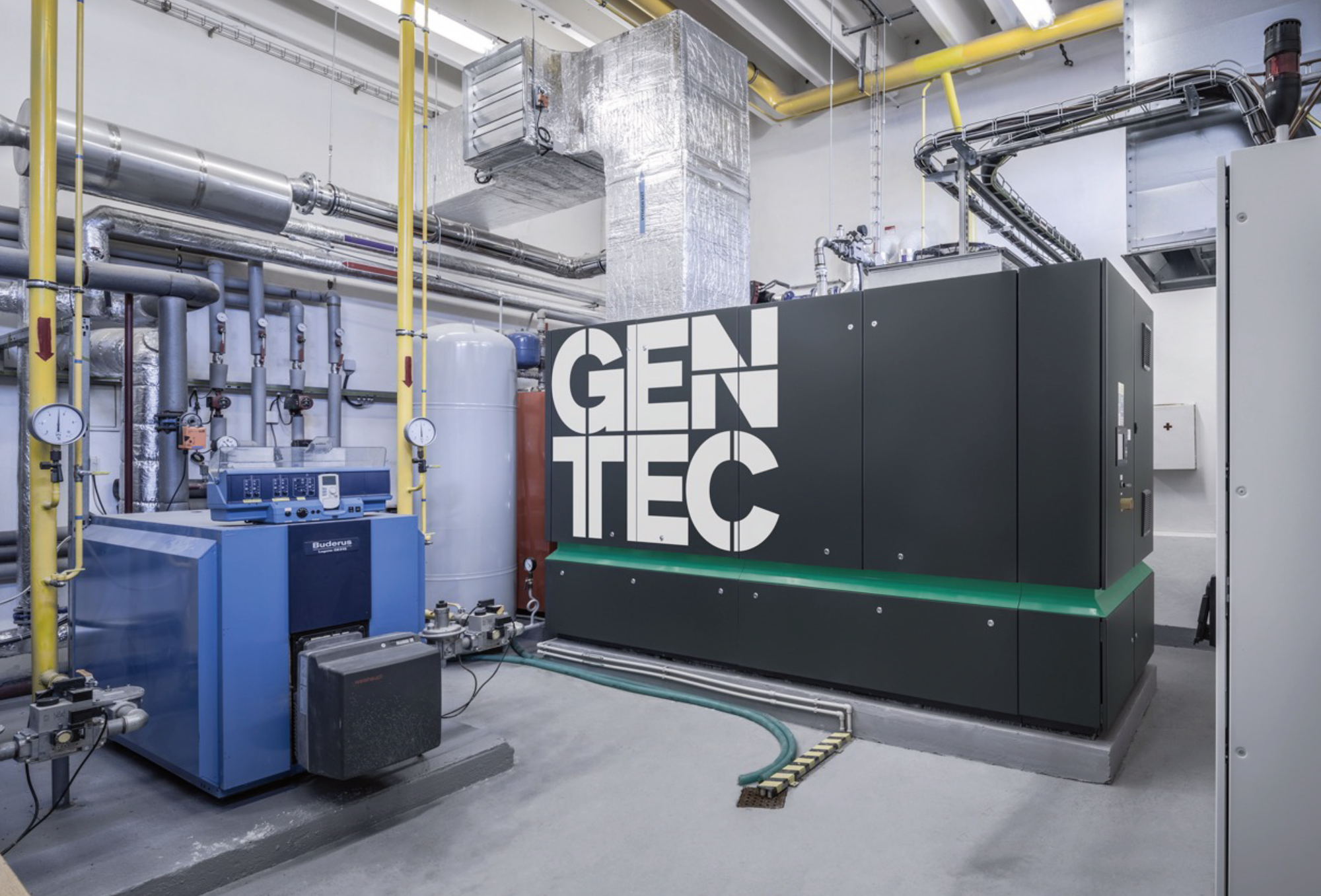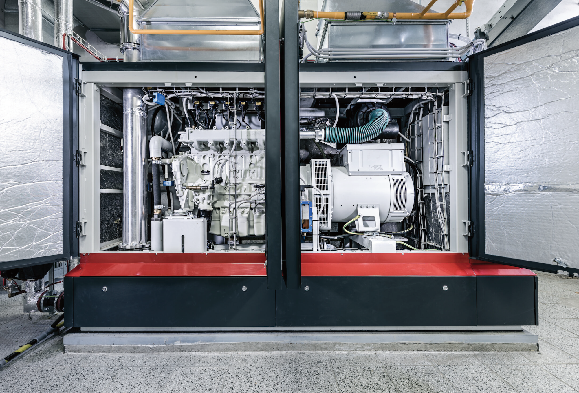 コージェネレーションユニットは発電と同時に熱を回収するため、燃料エネルギーを無駄なく活用でき、排出ガスも大幅に低減できます。