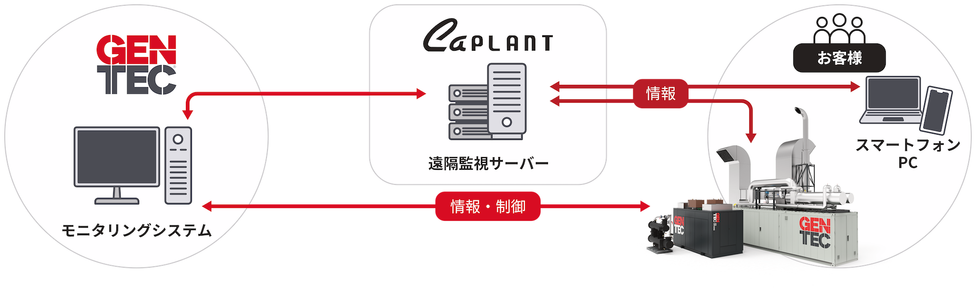 (株)シーエープラントではGENTEC社のモニタリングシステムと連携しており、24時間365日CHPの運転状態の監視・制御を行っています。